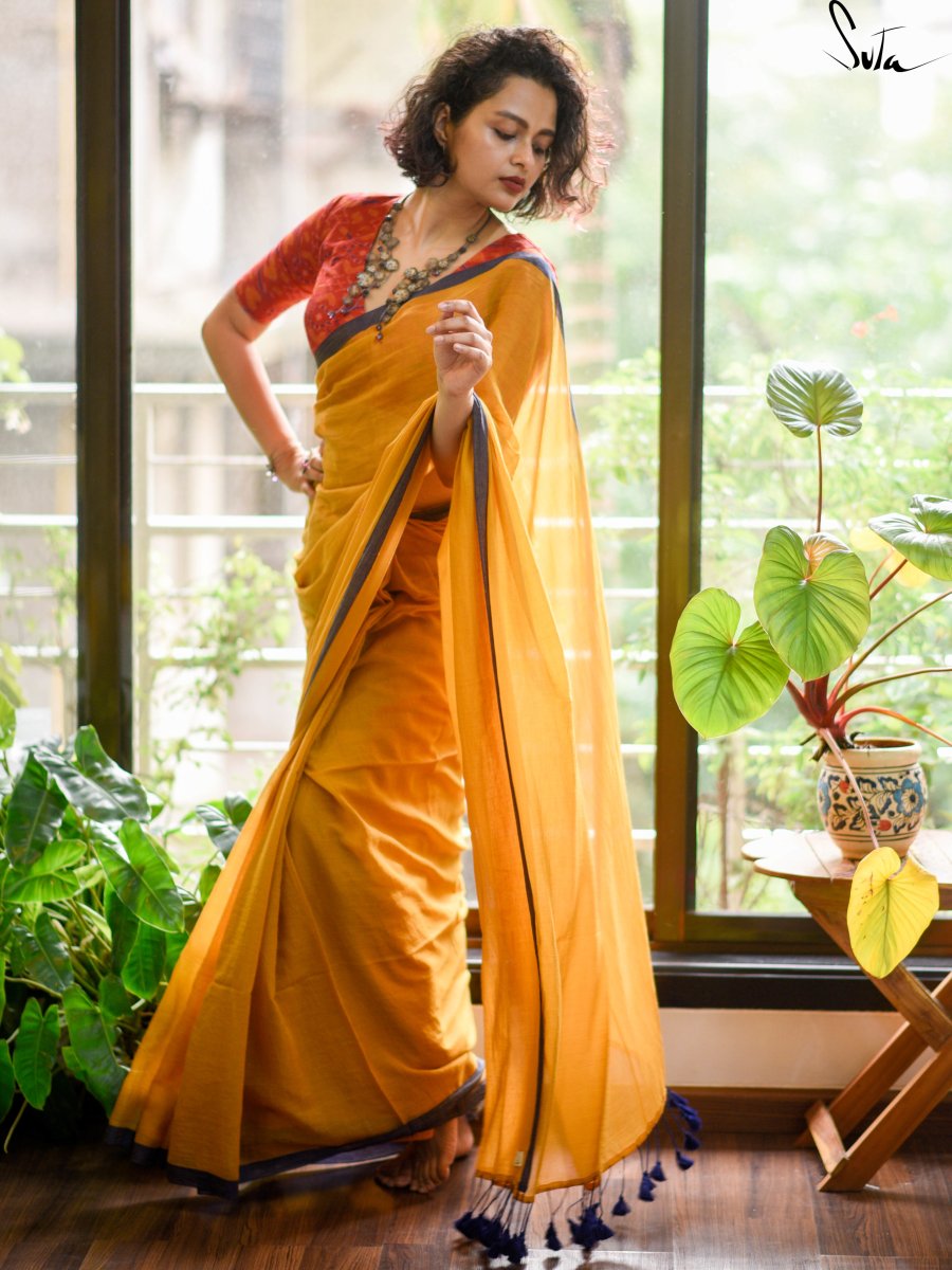 The mul cotton is what we call ‘made in heaven’ at Suta. Known in West Bengal as mul mul, the fabric is what can be categorised as muslin cotton. It is believed that this fine method of weaving cotton can be traced back to even before the Indus valley civilization. What makes this fabric special is the almost magical process of weaving it. Cotton fibres are separated and spun into strong threads. The lightest and the most delicate fibres are separated and are then spun into muslin thread. These are then woven into fabrics by skilled weavers. The history of muslin weaving is a beautiful chapter in the history of Indian textiles. The process of the yore was much more complex and involved many unique tools that look primitive but worked like magic. The upper jaw of a catfish was used to initially clean the cotton before spinning. To separate the lightest fibres, a Dhunkar (a bamboo bow) was used, which when strung in a distinctive way made the lighter fibres rise above the heavier ones. This process gave the title ‘woven air’ to the muslin fabric. Weavers famously wove on looms that were at ground level and operated the looms from pits dug in the ground. Even during the Mughal era, the muslin fabric was seen as a symbol of power for its finesse. History is full of anecdotes to prove the awe that the muslin fabric generated. Emperor Aurangazeb is said to have chided his daughter Zeb-un-Nisa for appearing naked in the court when in reality she had been wearing several layers of the muslin cloth! Such was the fabric’s delicateness. The almost invisible fabric had made an Arab traveller in the 10 th century remark that the degree of fineness is such that a garment can be drawn through a ring of a middling size. During the British colonisation and even during the Mughal rule, the art of weaving muslin took a hit as weavers were treated poorly and drought hit many of the weaving centres. As a result, today, the process of weaving has seen a lot of change. Nevertheless, the essence of it hasn’t changed and the charm of the fabric still remains.